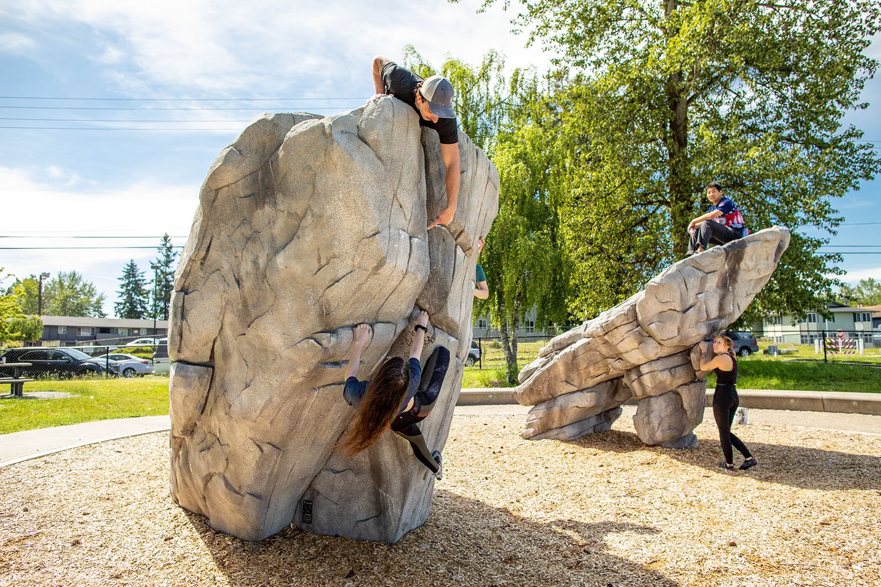 Our Performance Boulders are designed by climbers, for climbers, to provide the most authentic climbing experience possible. Built to public playground safety standards, these boulders bring all ages of the community together to develop skills and have fun.