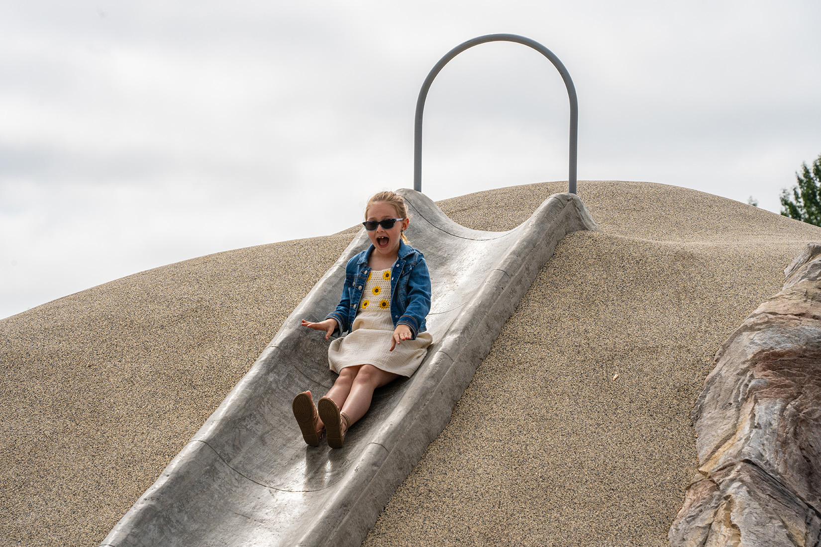 The modular embankment slide system is durable, cool to the touch, and adaptable to most sites.