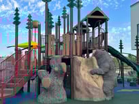 The Bear Tree Access Climber features an ultrarealistic bear climbing a tree and connects to a 6’ deck. The expressive design invites adventurous play rooted in woodland environments. Our universal detail allows our access climbers to connect to any post and deck system and brings an element of nature to traditional playground equipment.