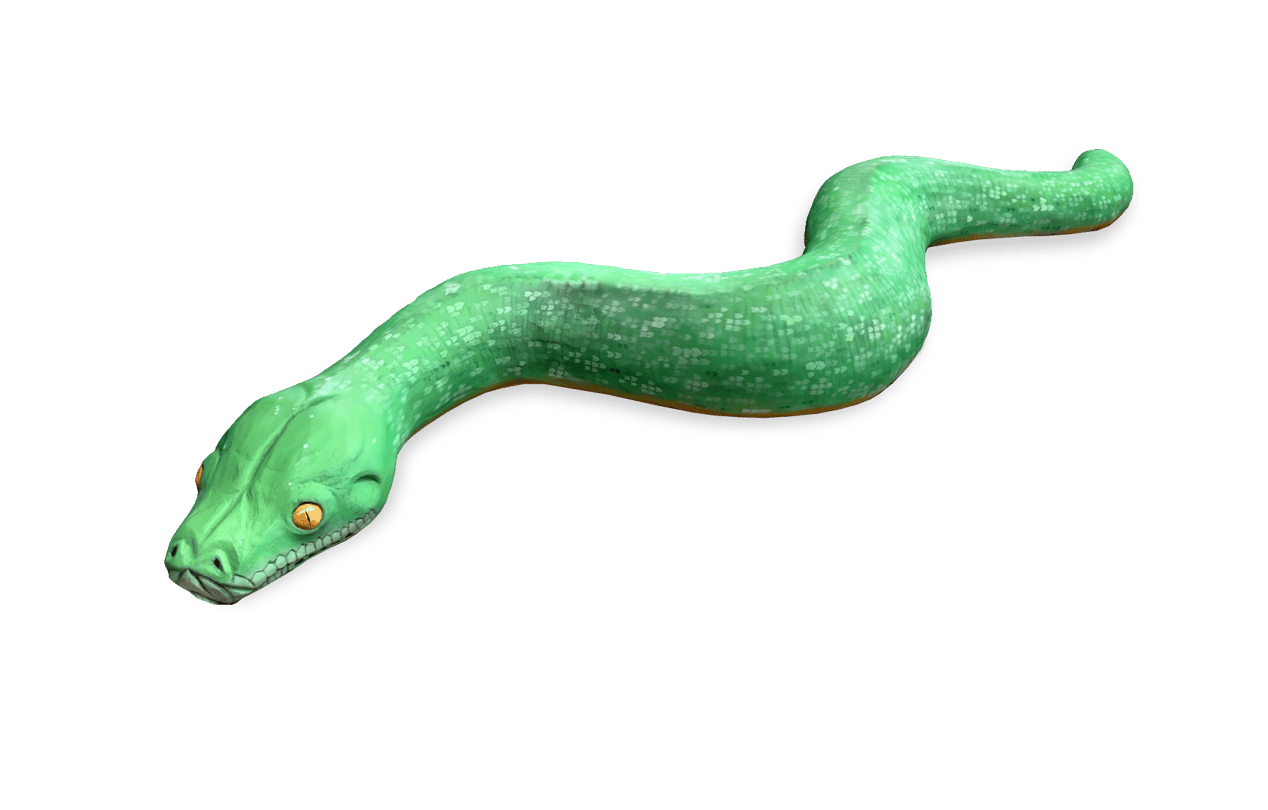 The Green Tree Python flows organically through the play space like a living forest vine. Its winding form invites children to follow its path, fostering curiosity and confidence along the way. Bold and lively, it brings the untamed beauty of the rainforest into every moment of play.