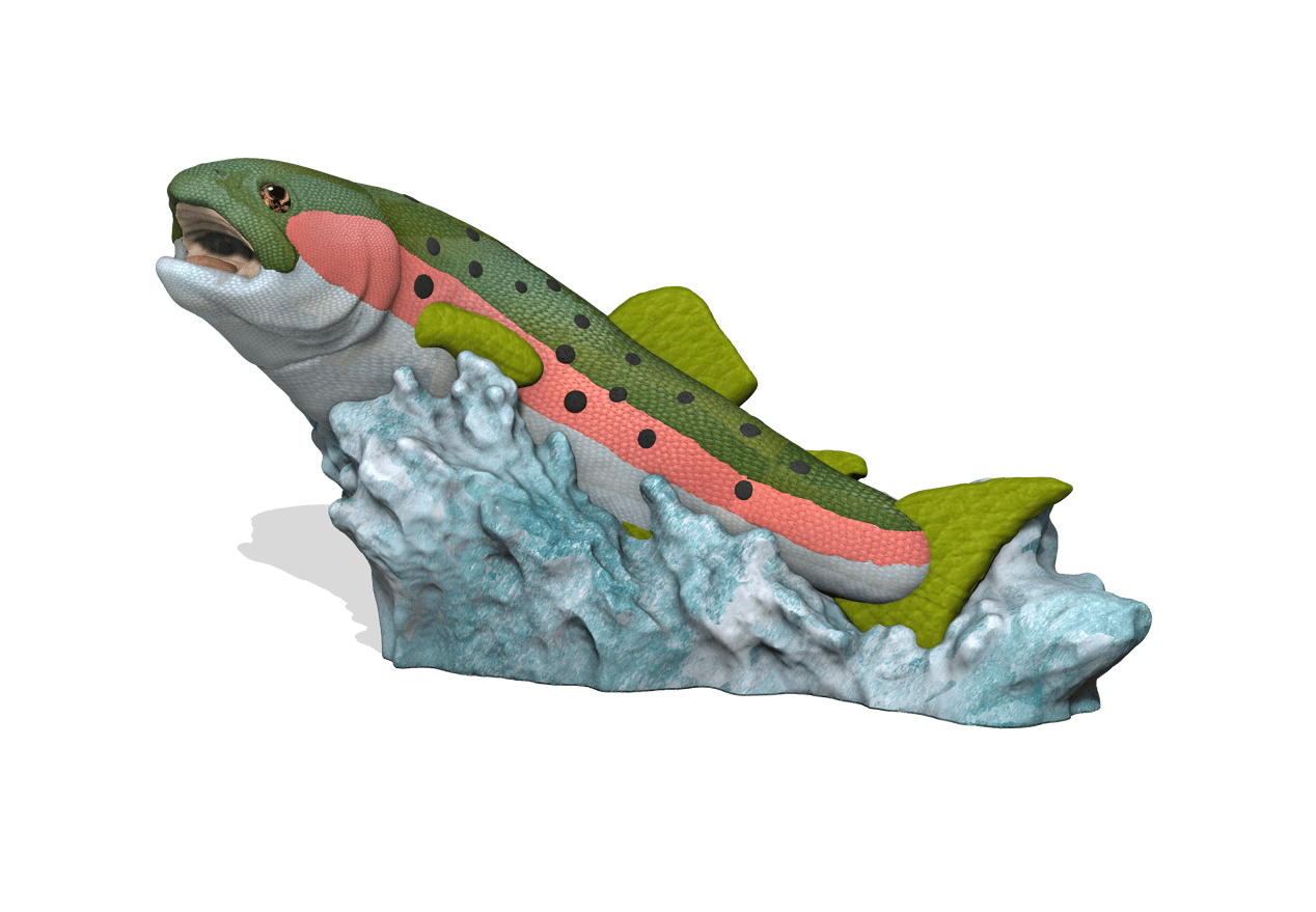 Leaping upward with fluid motion, the Jumping Trout climber celebrates fishing in rivers and streams. Its graceful silhouette invites climbing and nature‑themed storytelling. Coincidentally, this trout is the exact size of that one your dad almost caught back in ’96.
