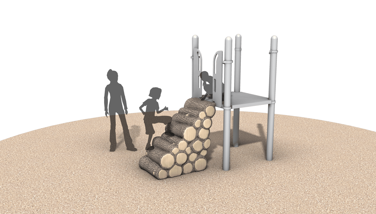 The Log Stack Access climber is our classic Woodland deck access that offers an easy ascent to a 4’ and 5’ deck. This nature-themed access pairs perfectly with our other Woodland equipment and even has some custom sizes if you need to go bigger or smaller.