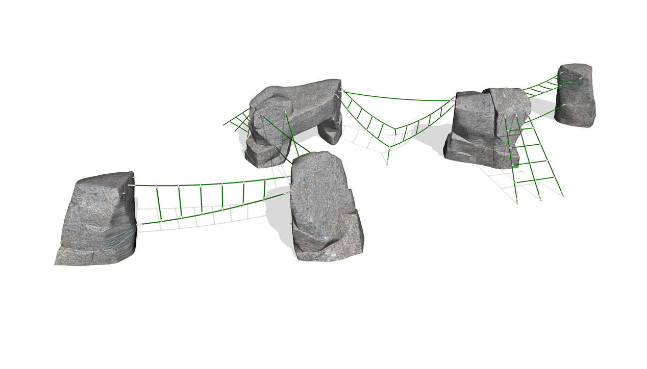 Like the massive and meandering Rio Grande River, this five-boulder combo is our largest combo and offers something for everyone. Its linear design stretches like the Texas landscape and features our 9-strand steel braided polyester rope and stainless steel and aluminum connection hardware for years of maintenance-free play.