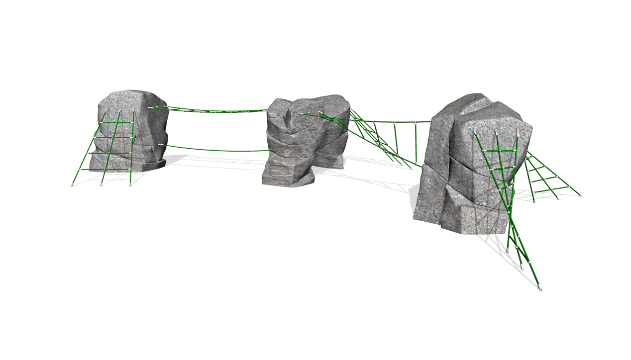 This three-boulder combo is inspired by the steep mountains and technical terrain of our sister city, Telluride, which is a short drive away from our manufacturing facility. This combo features a series of ropes and our largest Via Ferrata Boulder 4.