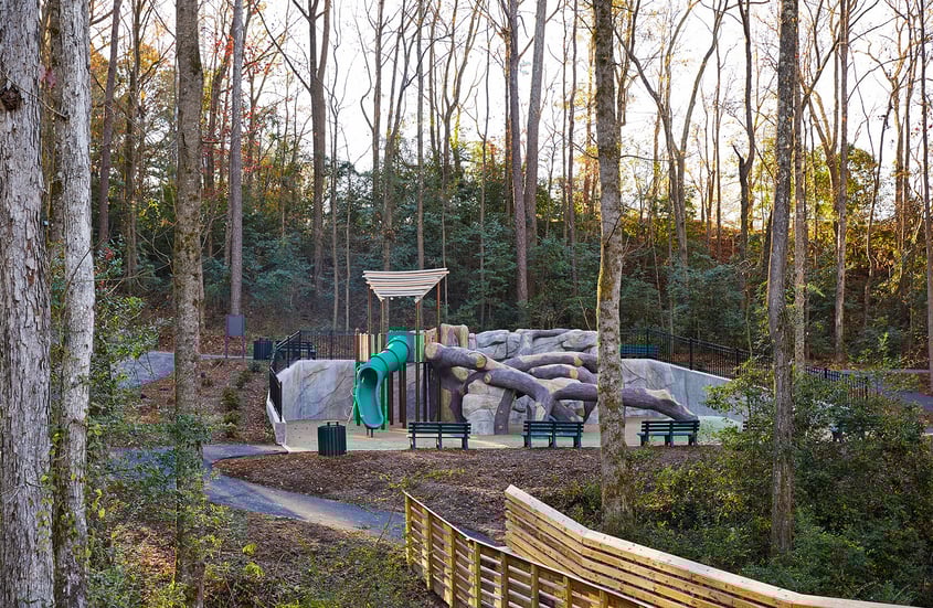 Blanchard Park began with the vision of its community to create a one-of-a-kind destination playground that worked with the undeveloped site. IDS developed a series of distinct nature play pods that encourage exploration and independence while enhancing the natural beauty of the site.