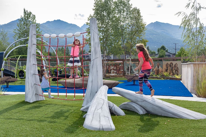 The Cook Inlet Native Head Start Program serves the indigenous communities surrounding Alaska’s historic Cook Inlet. They came to IDS when they wanted to create a playground that would speak directly to their history and serve as a teaching tool. Working with the community, we created a series of interpretive play sculptures that describe vernacular housing and hunting methods.