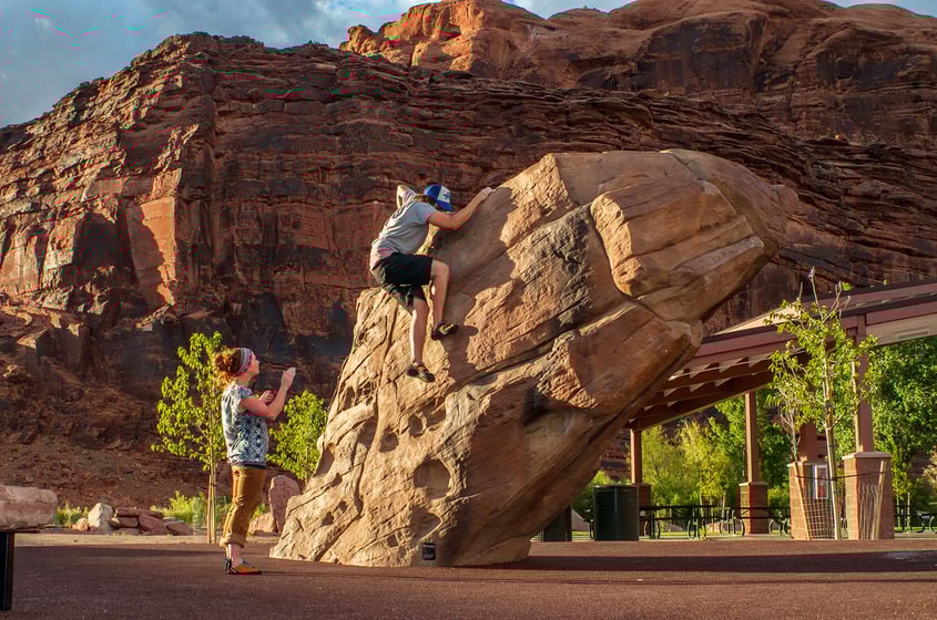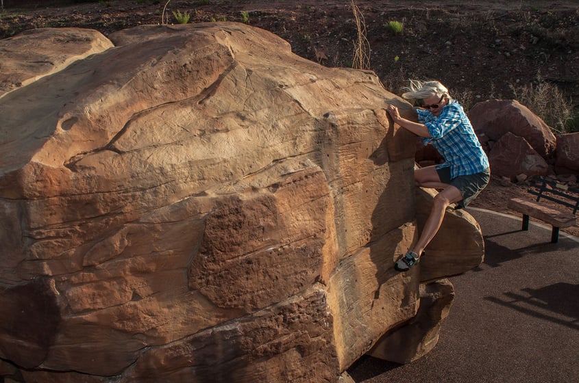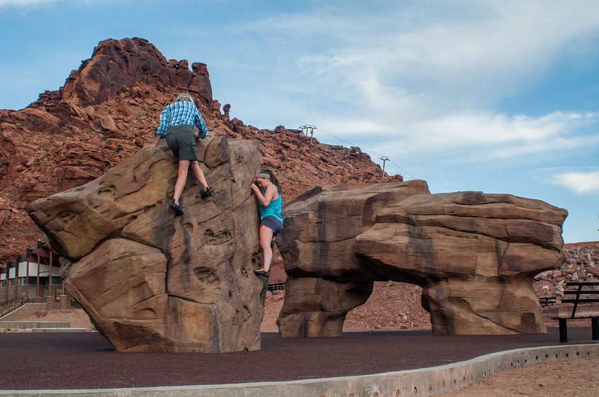 ID Sculpture loves climbing so when the opportunity arose to design and build new performance boulders for the town of Moab, Utah we were thrilled. The boulders feature natural routes with a wide range of difficulty and are sculpted and stained to match the surrounding geology.