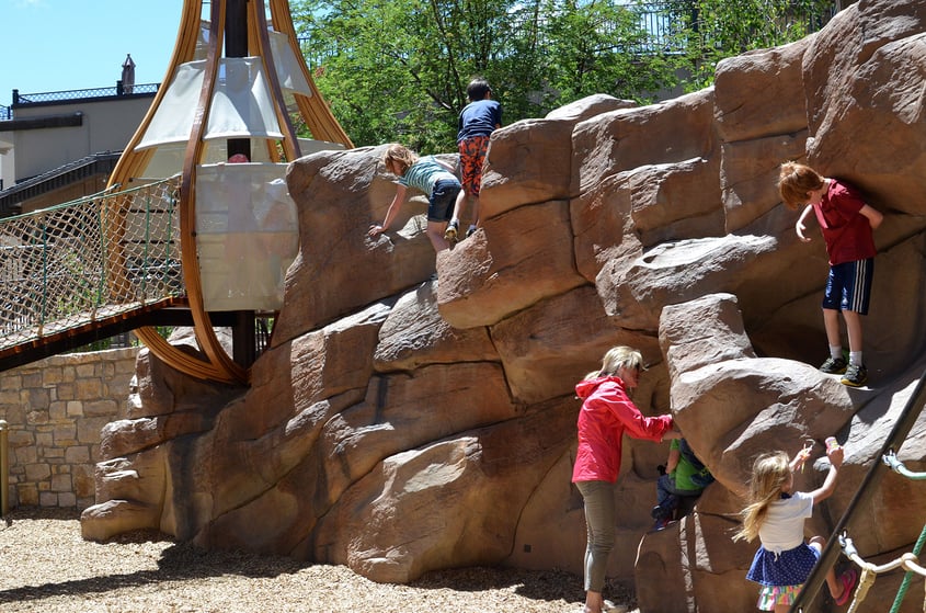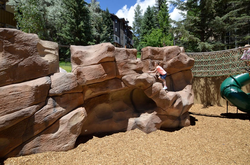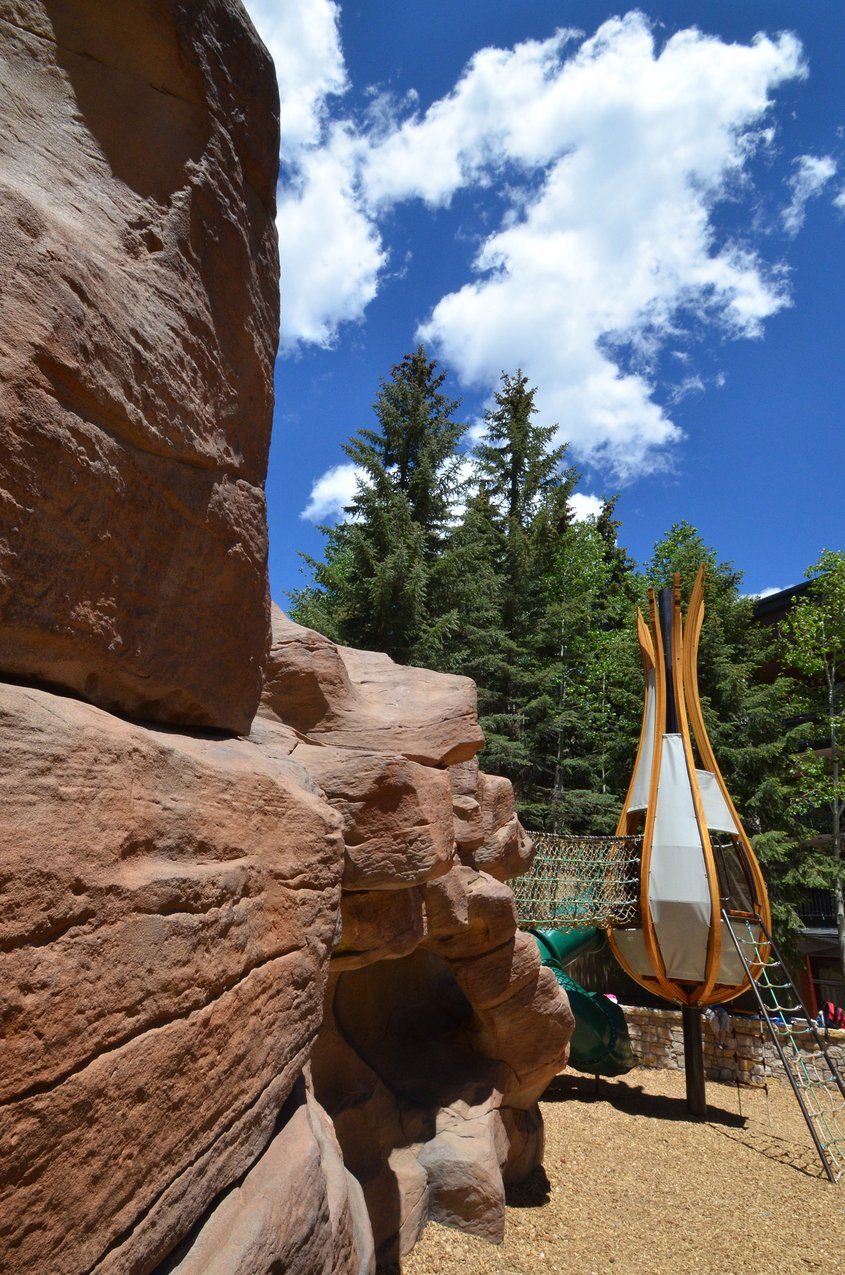 Sunbird Park an excellent example of one of our very uniqe playground specialties – sculpted retaining walls. This high-relief retaining wall has pockets, tunnels and crags for climbing and scrambling. The integrated "nest" structures were designed and built by Denver's Tres Birds